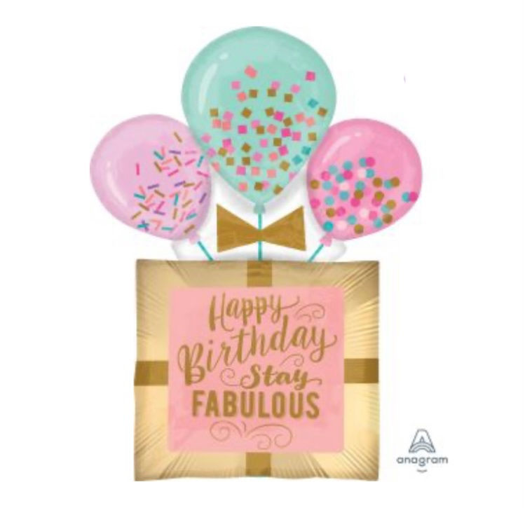 Supershapes are 28 inches, regular size foil balloons are 18 inches.